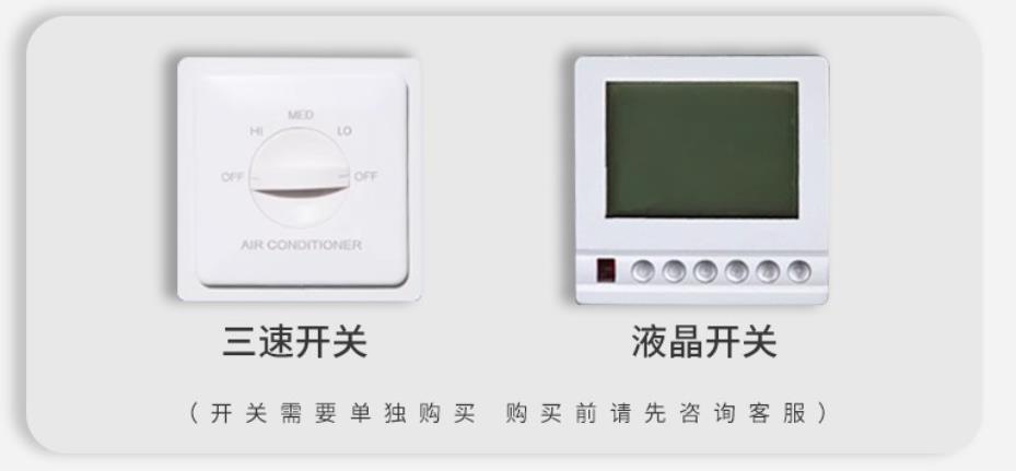 獨立控制:每個單元配備獨立溫控器和調速開關,用戶可自行開關、調節風速和設定溫度,實現房間的個性化溫控和節能運行。